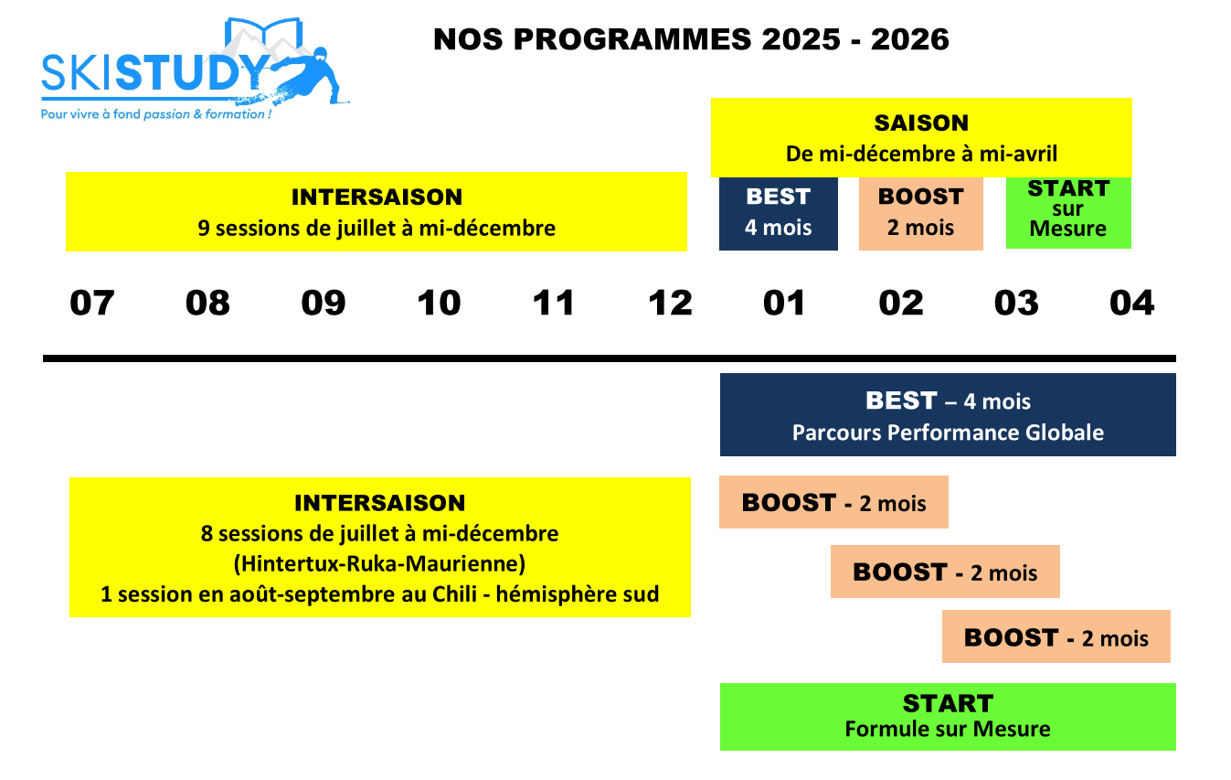 Les programmes BEST, BOOST et START s’adressent aux passionnés de ski alpin dès la catégorie U18 (année  2008 pour 2024-2025, année 2009 pour 2025-2026 et année 2010 pour 2026-2027).